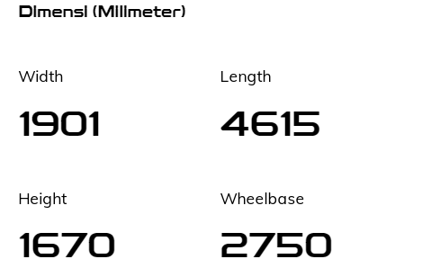 DimensionsLength x Width x Height (mm)4615 × 1901 × 1670